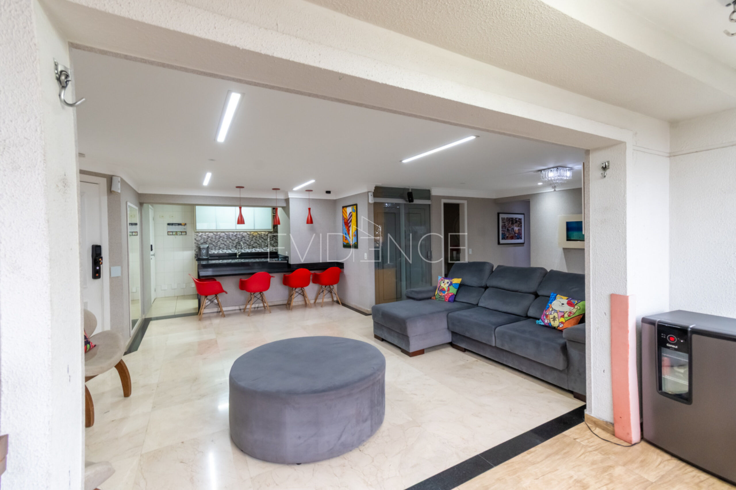 Área comum muito bem decorada com hall de entrada, salão de festas e churrasqueira, piscina adulto e infantil, quadra poliesportiva, salão de jogos, sauna, e linda área verde.