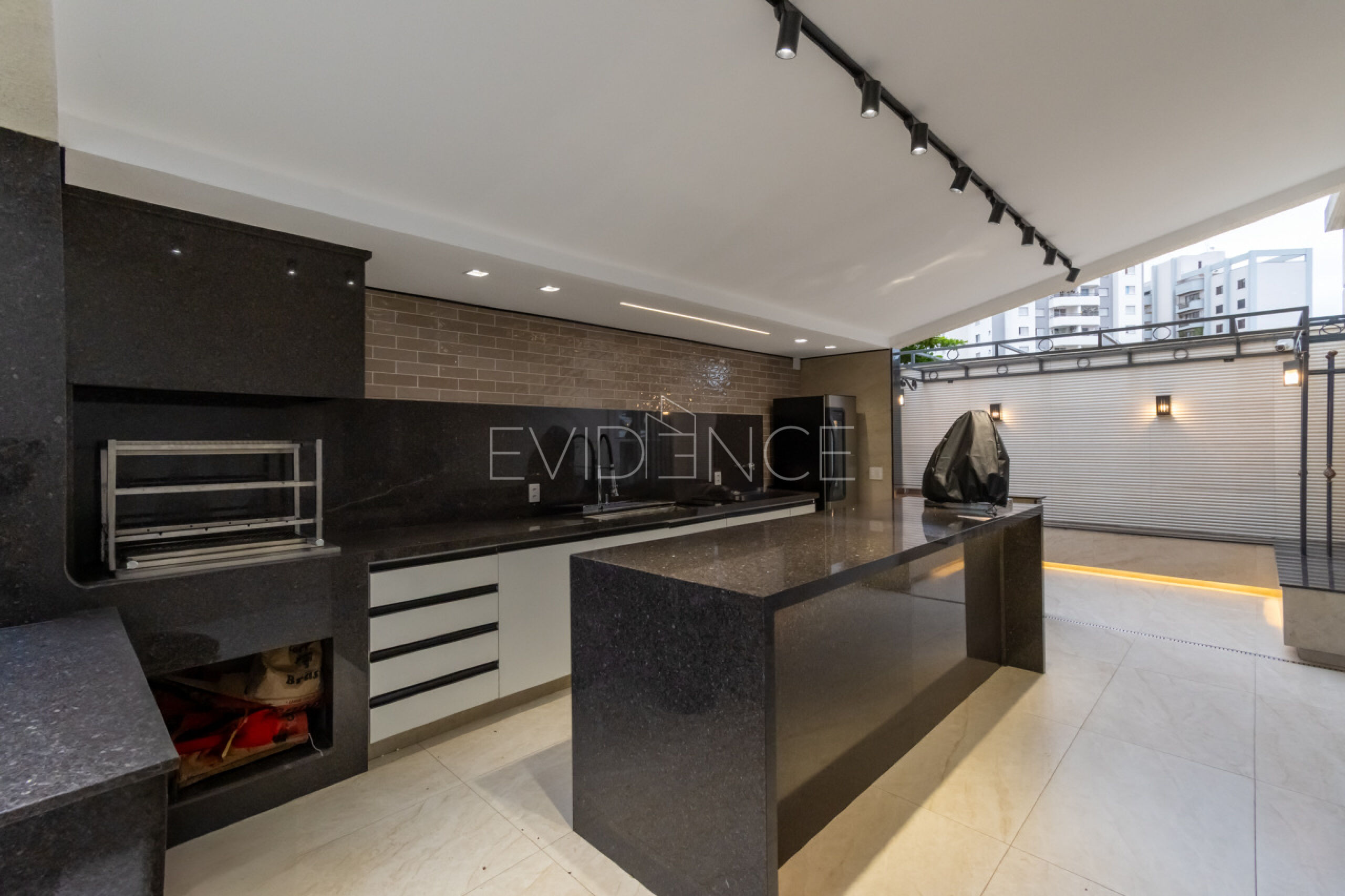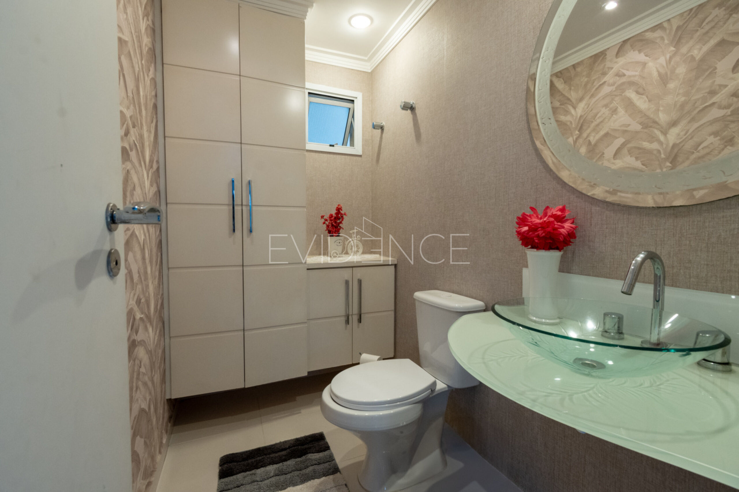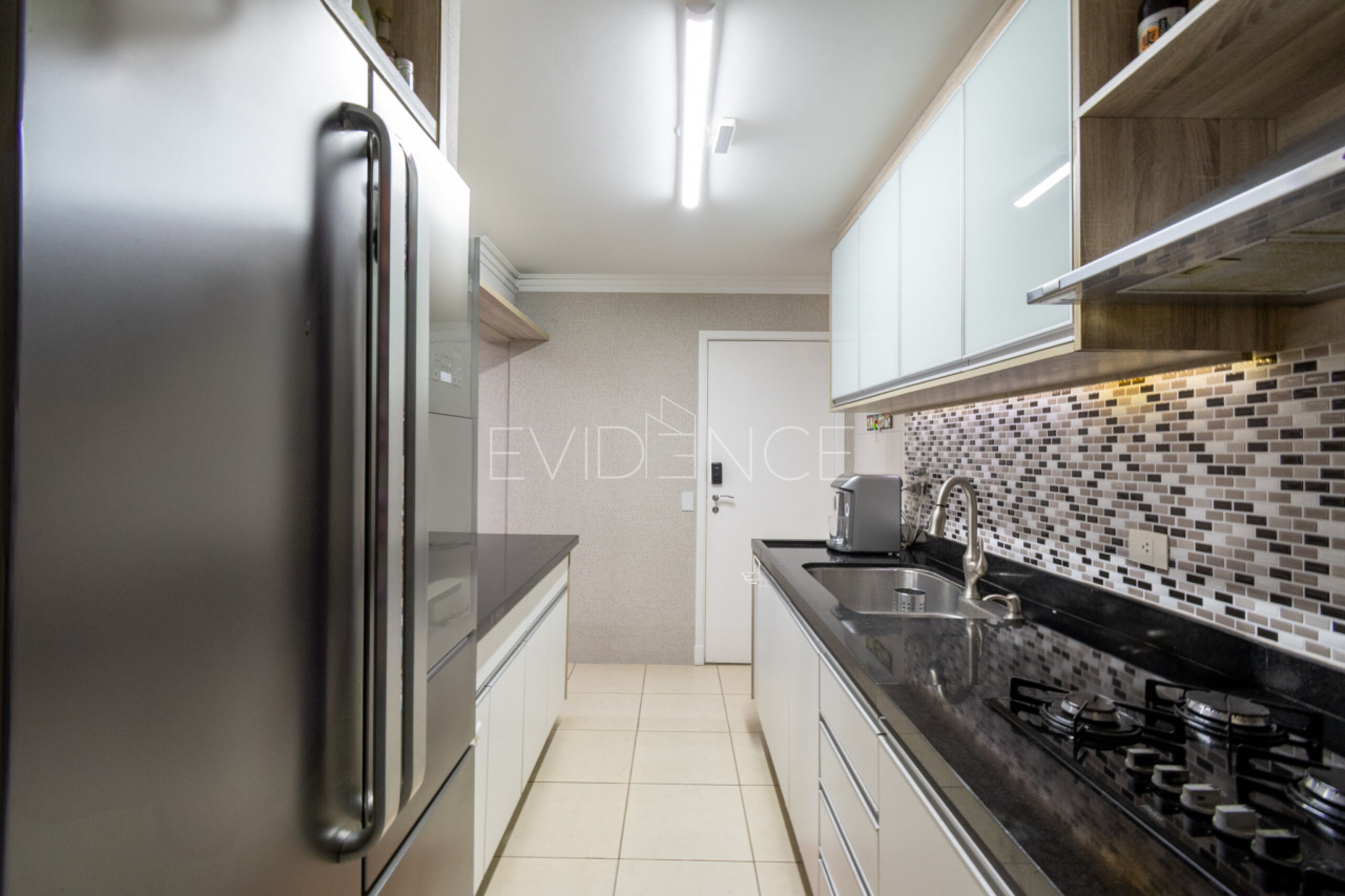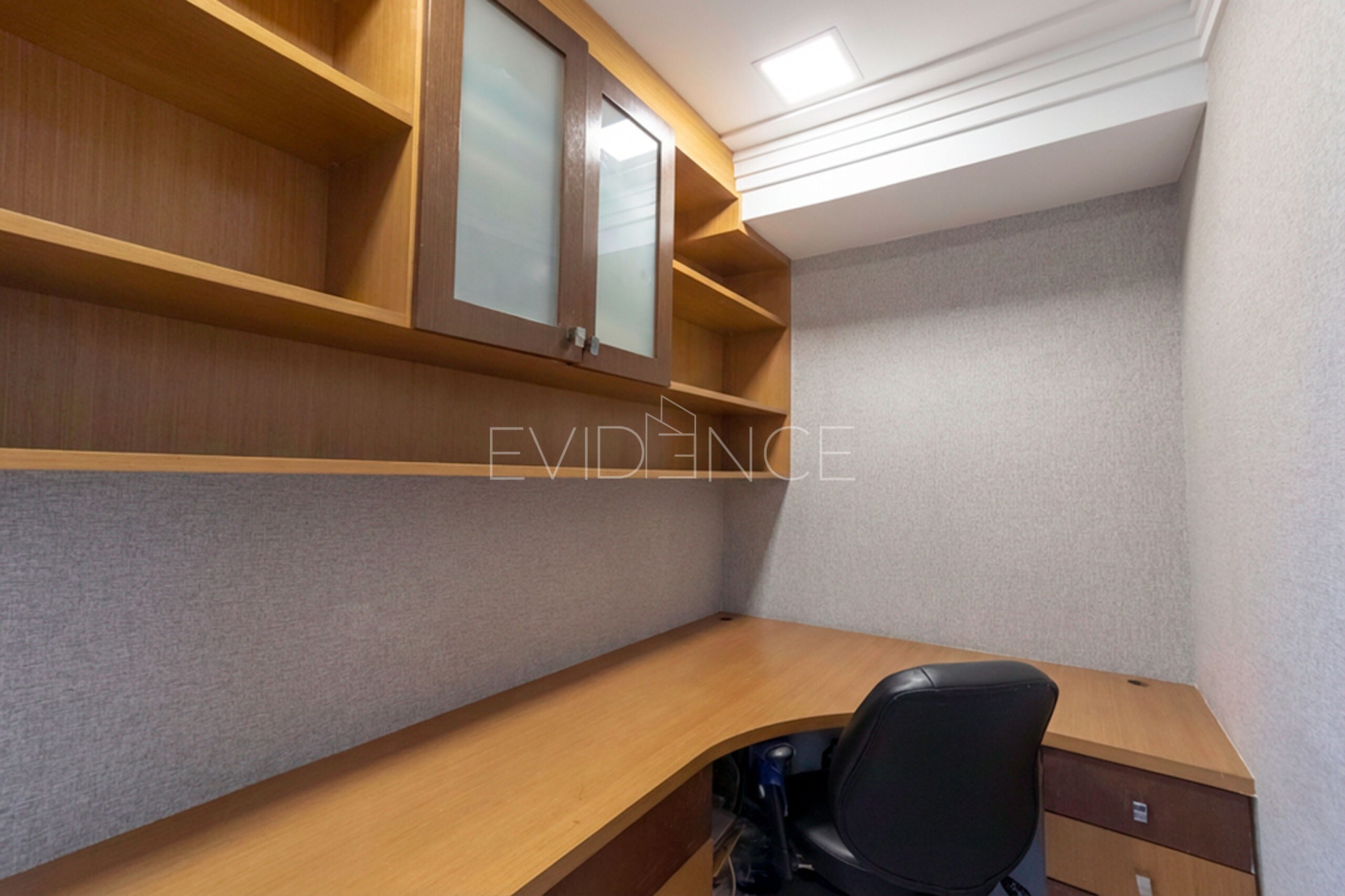O apartamento tem acabamento de muito bom gosto com armários planejados, iluminação e decoração.