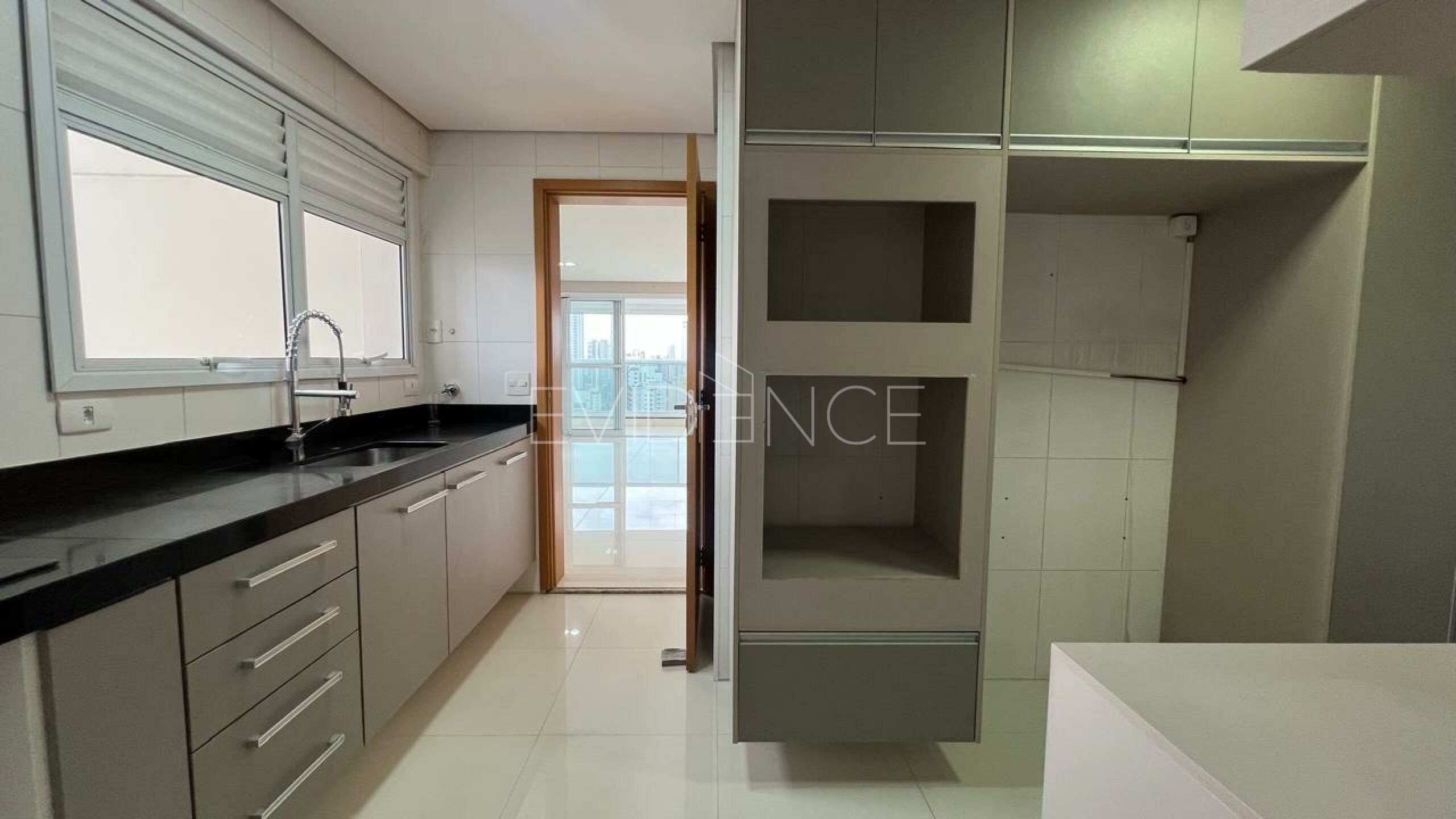 A sacada espaçosa conta com uma vista livre incrível, perfeita para relaxar ou receber amigos.