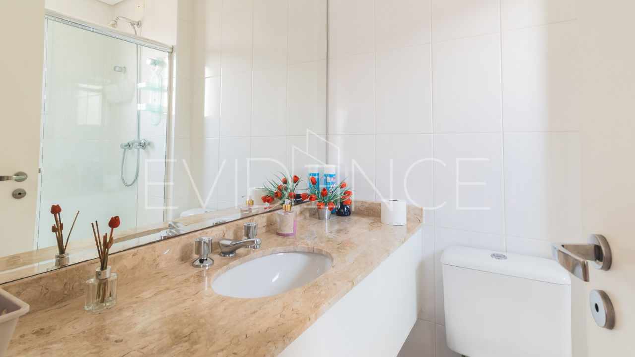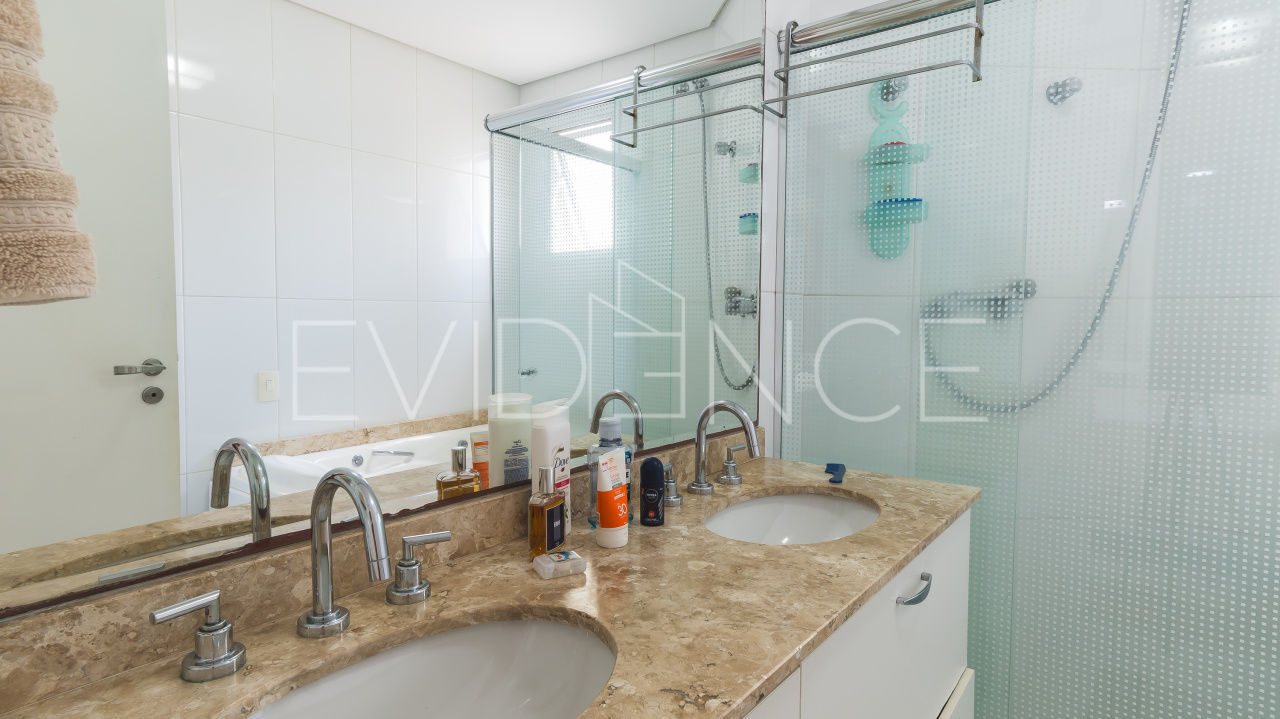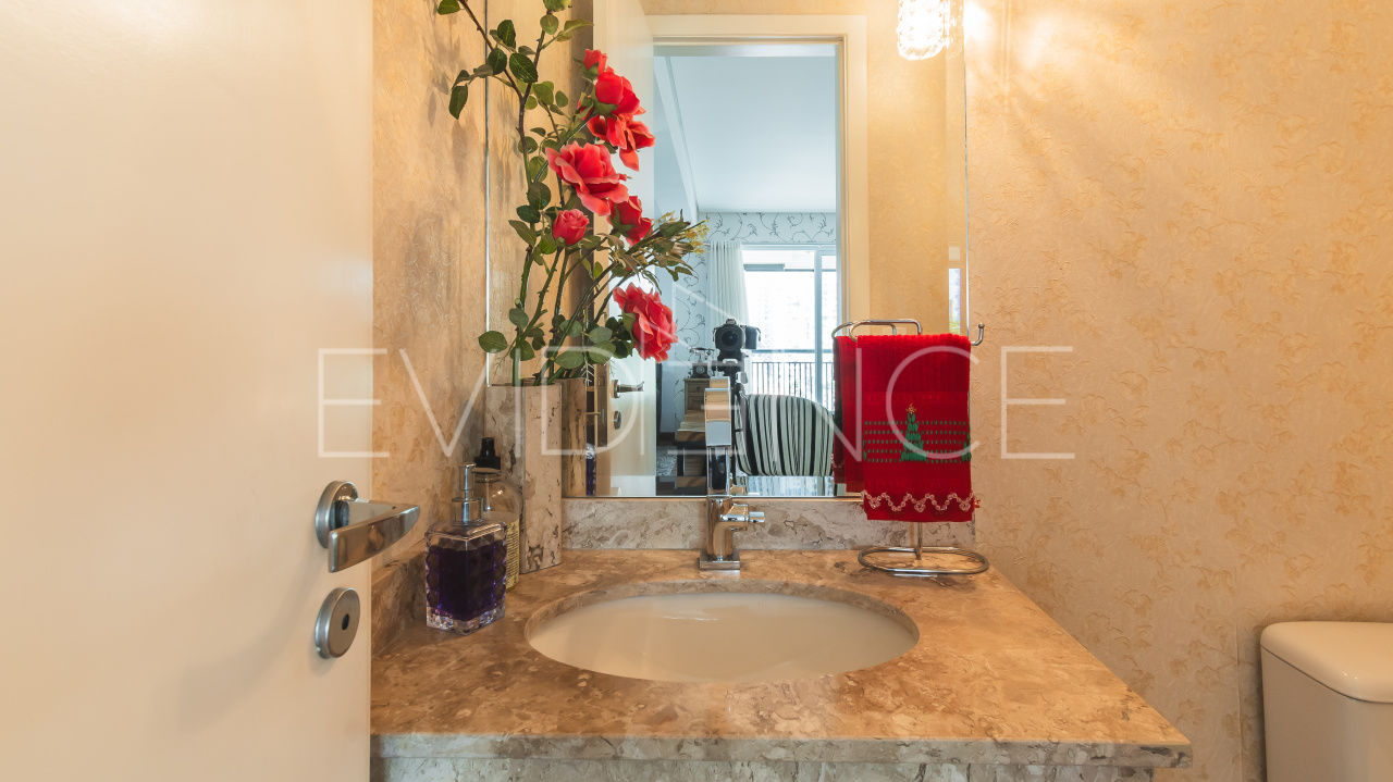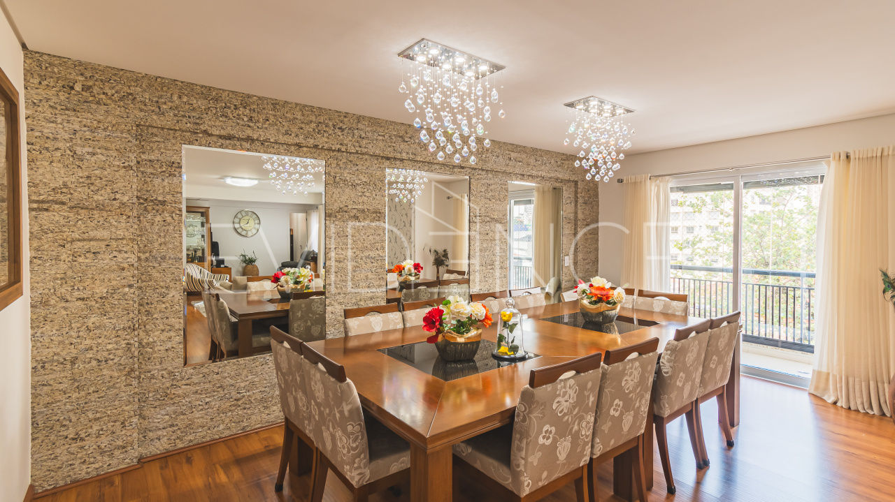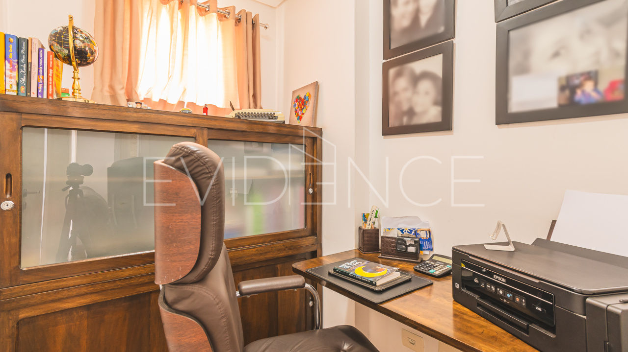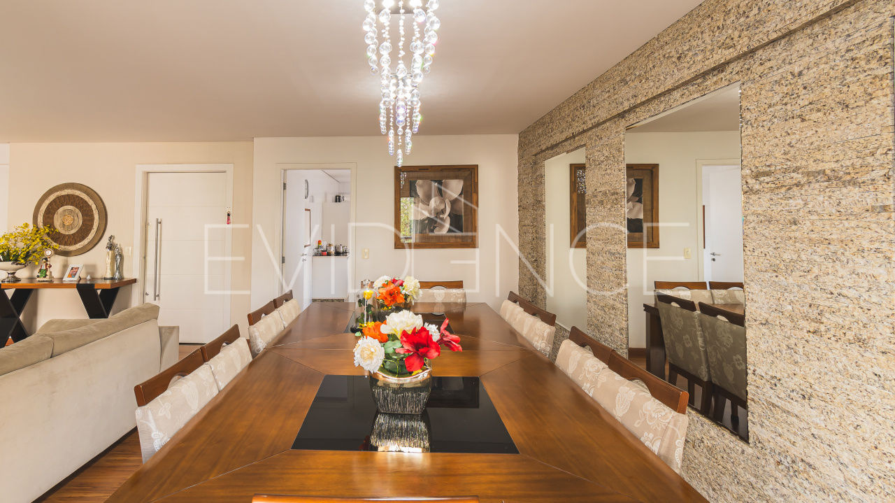 O imóvel conta com 3 suítes (a principal com sacada), 5 banheiros, sala para 3 ambientes (jantar, estar e TV) + escritório.