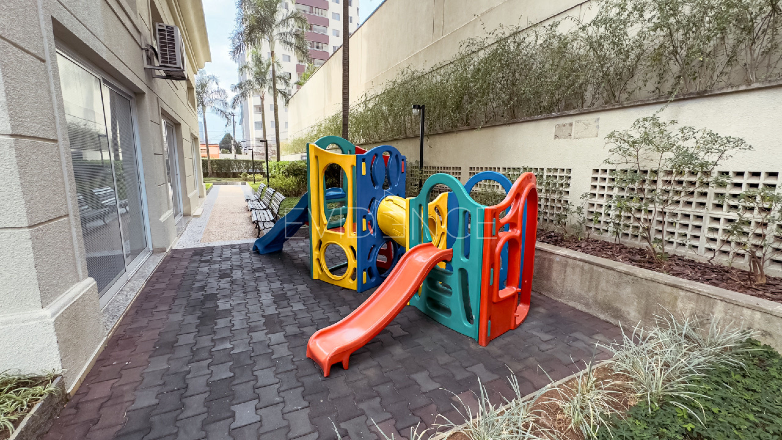 Área de lazer, espaço gourmet, área verde de jardim, playground e salão de festas, com área fitness piscina.