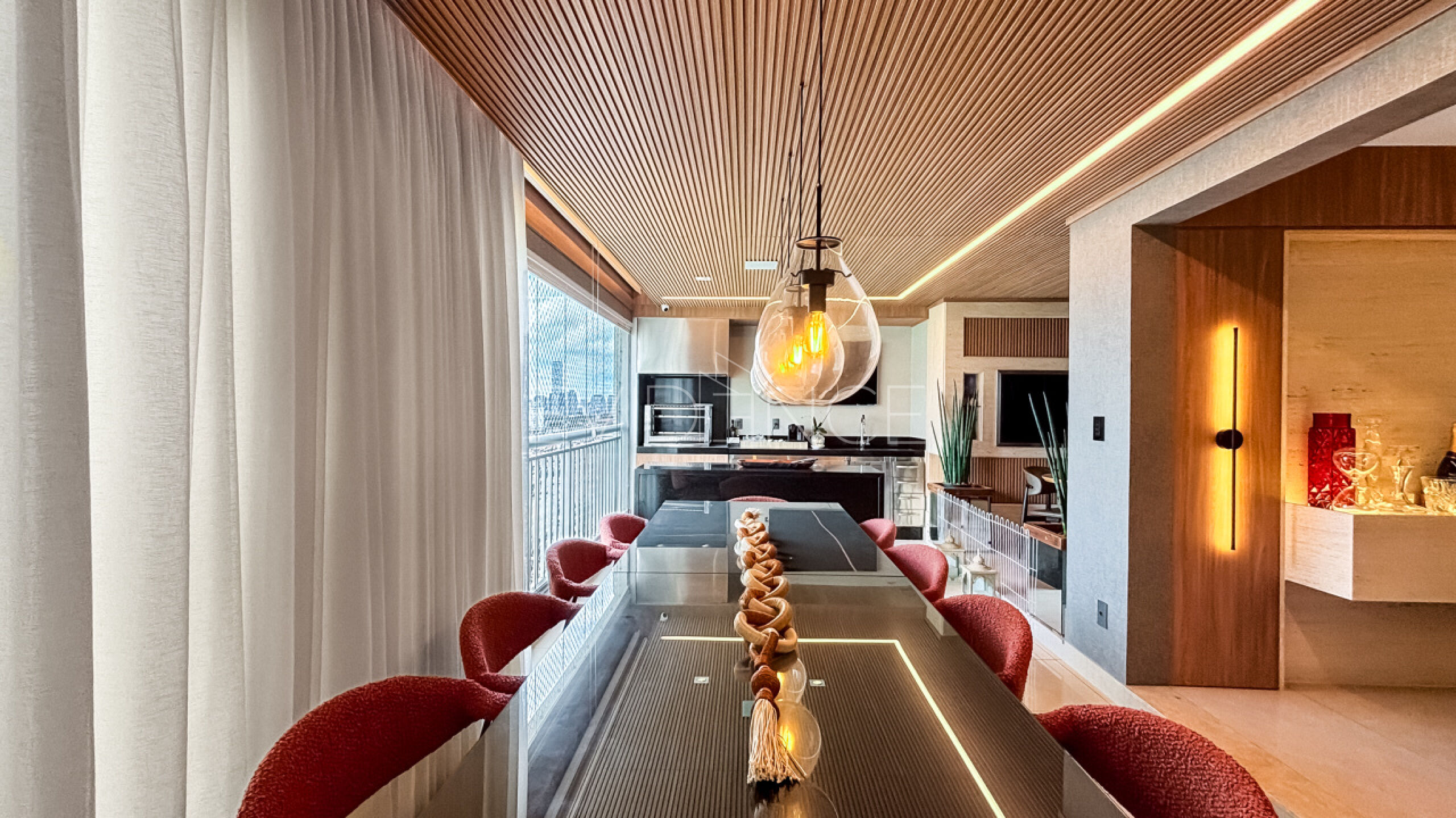Imóvel porteira fechada, composto por 03 dormitórios, todos suítes, 02 salas amplas e varanda gourmet, com excelente distribuição dos ambientes. Conta com automação de som, iluminação e cortinas, sistema de câmeras, ar-condicionado novo nos dormitórios, sala e varanda, além de aquecimento a gás, cozinha gourmet, lavabo e área de serviço. São 04 banheiros, oferecendo conforto, tecnologia e sofisticação.