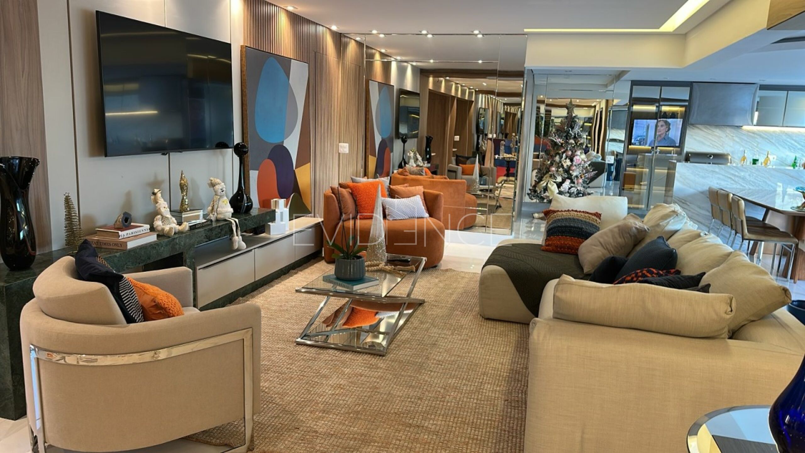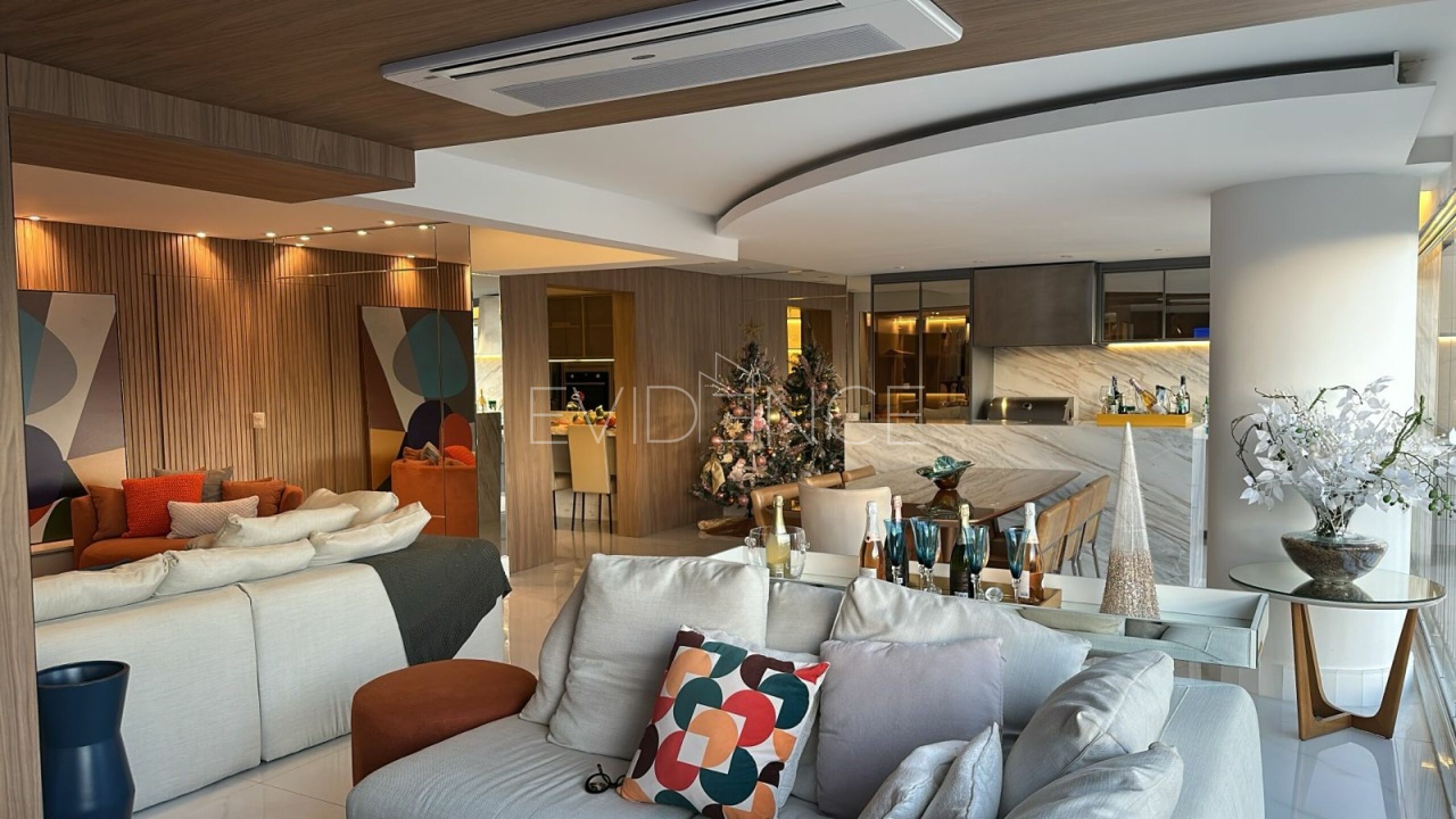 O imóvel que dispõe de 242 metros quadrados, conta com 4 dormitórios, sendo 4 suítes, ar condicionado em todos os ambientes, 6 banheiros no total e 4 vagas de garagem.