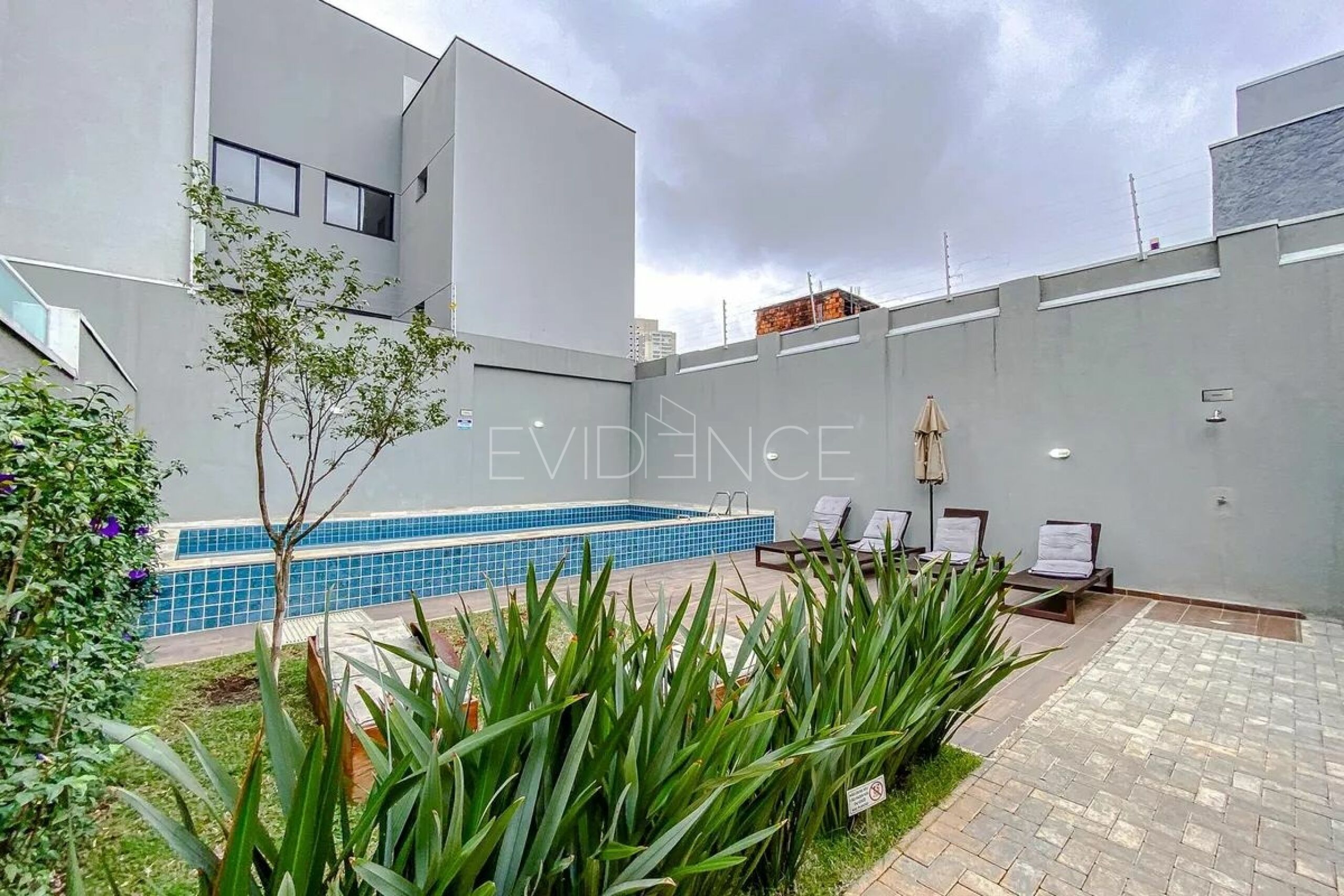 O condomínio conta com área de lazer : piscina, bicicletário, academia e sala de reunião.