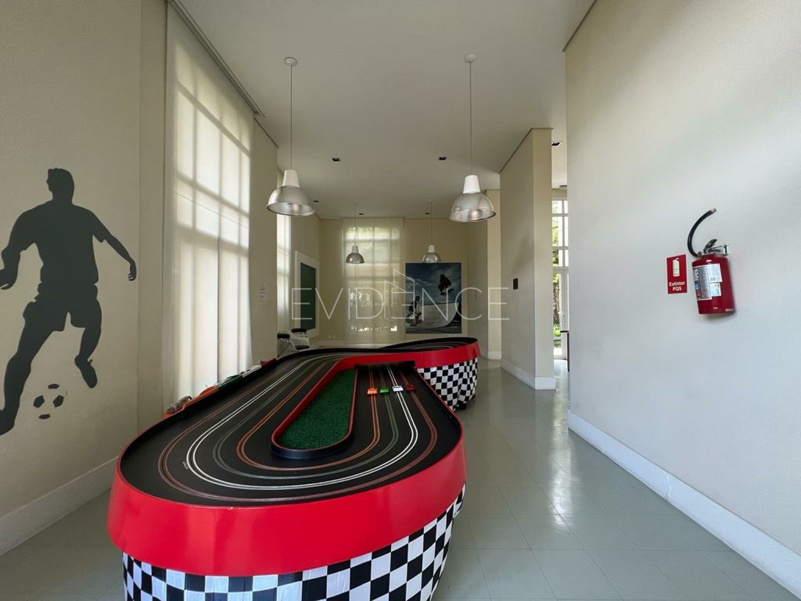 Brinquedoteca, sala de jogos, sala com autorama, cinema, cyber room