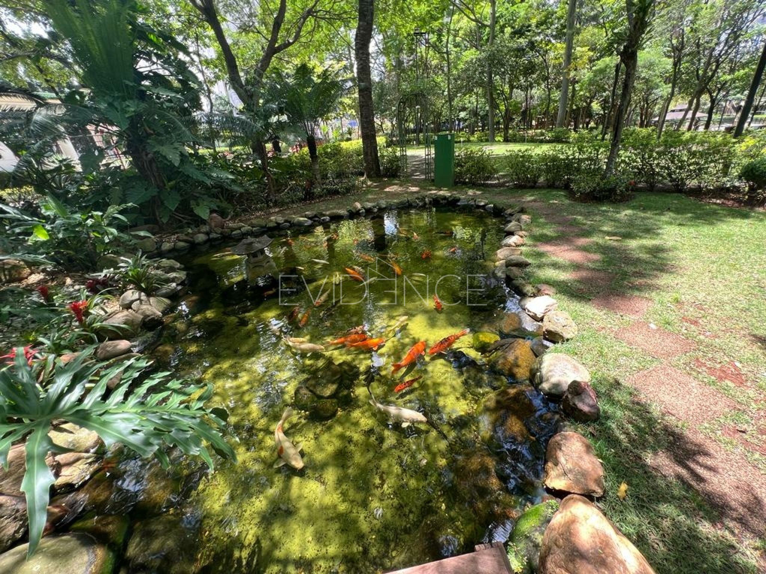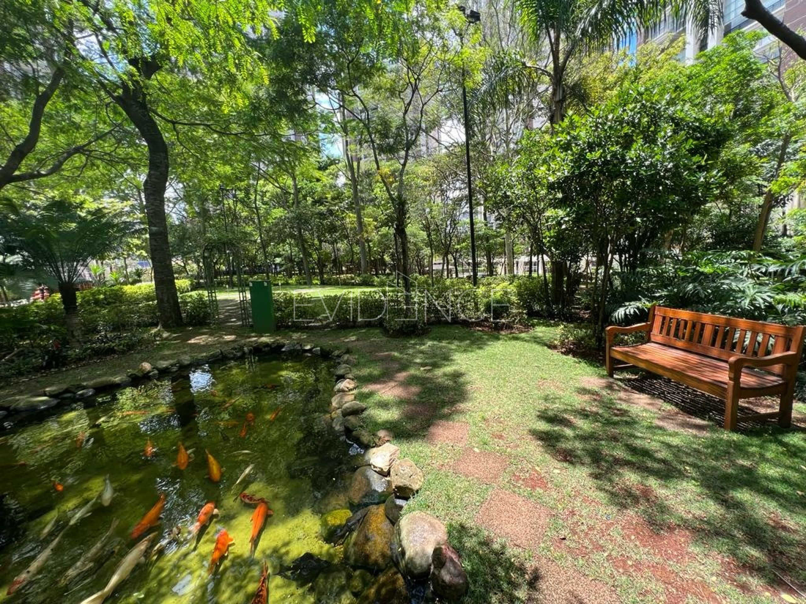 Bosque e meio à exuberante área verde do parque privativo do Central Park Prime com suas trilhas e árvores, surge um espetacular conjunto de piscinas com deck molhado, raia de 30m, bar de apoio e área de contemplação e na entrada do bosque em belo lago com carpas.