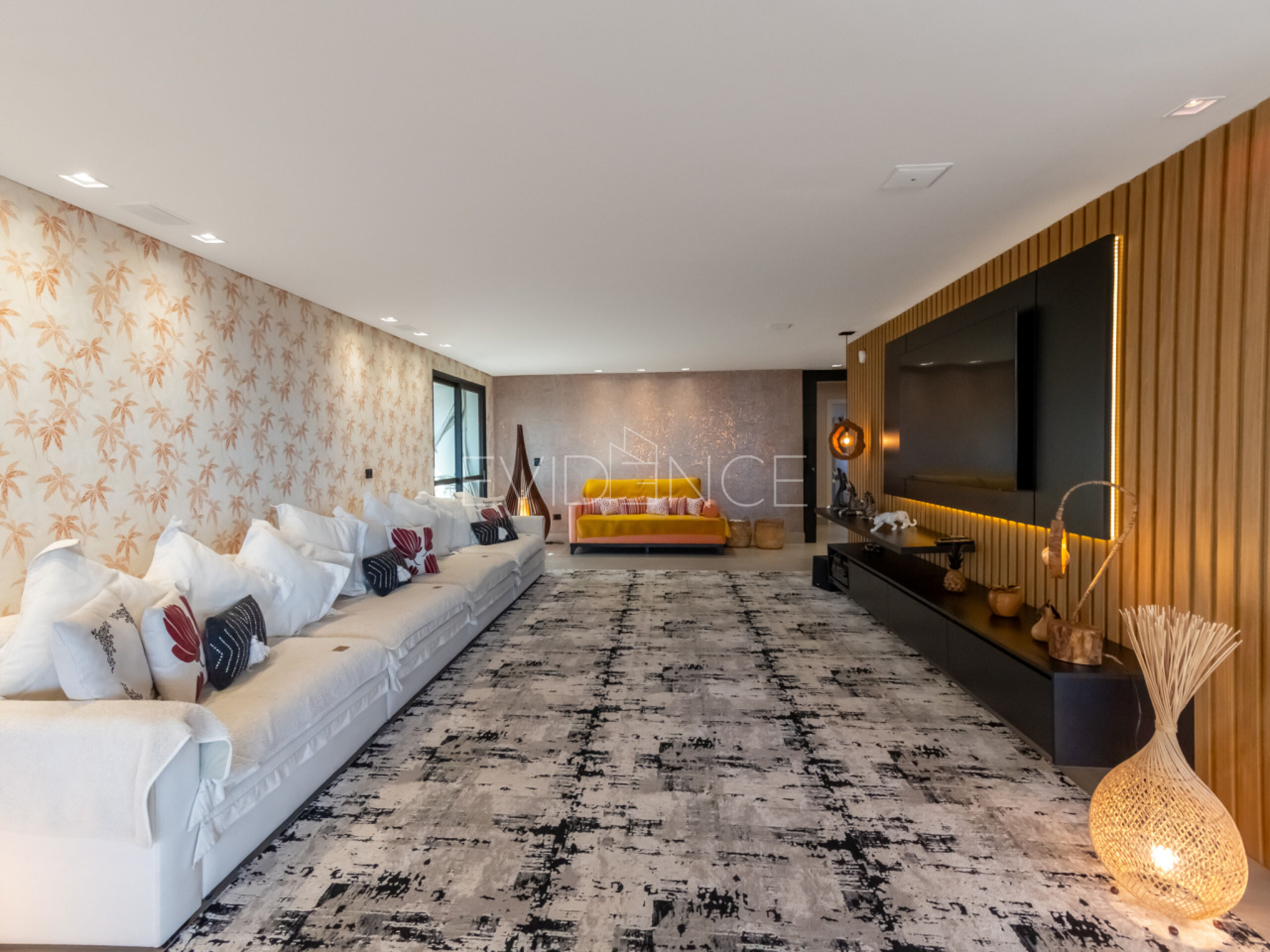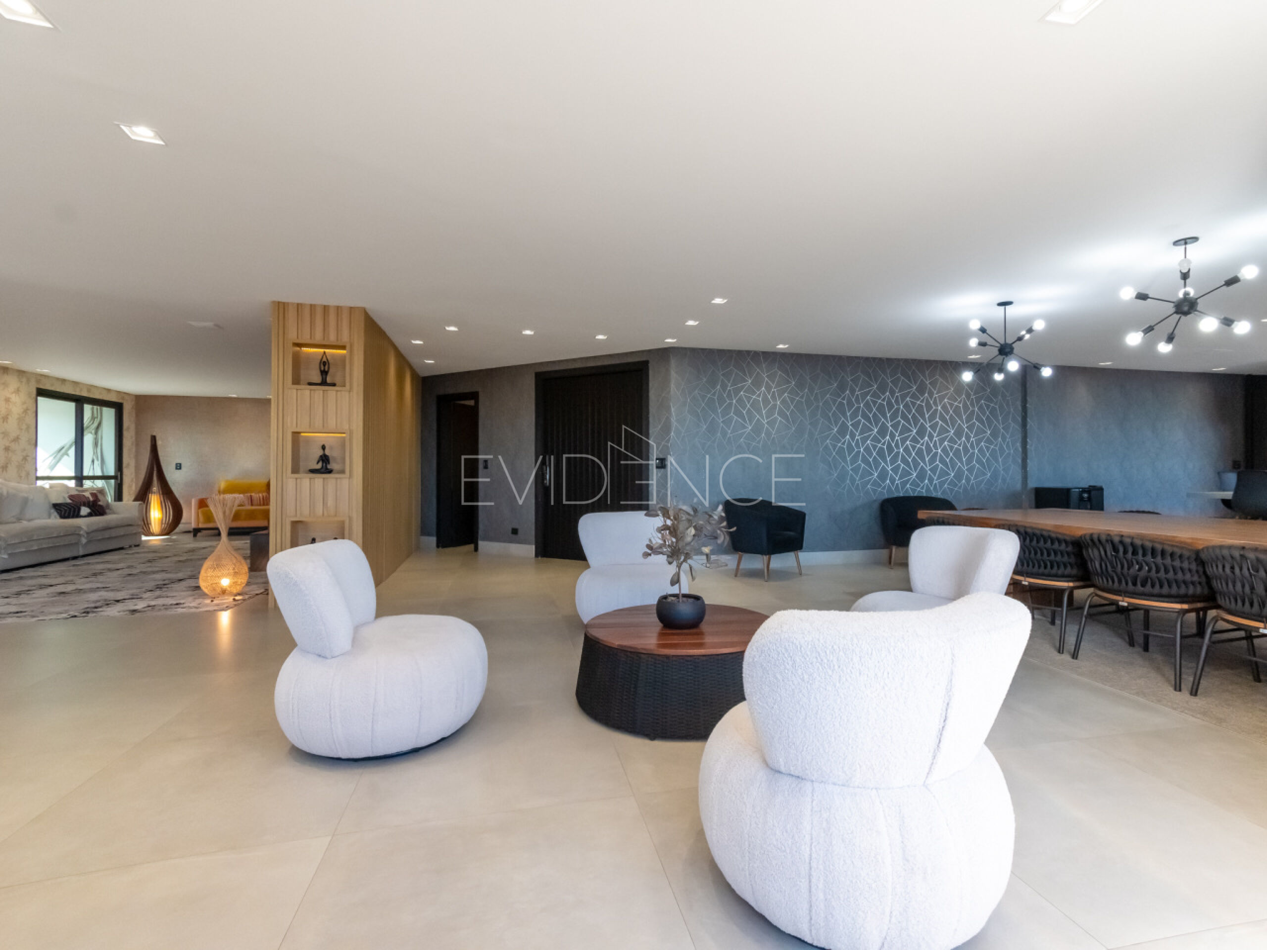 Cada suíte possui closet, incluindo uma suíte master espetacular com hidromassagem, planejada para entregar conforto absoluto. Os ambientes sociais impressionam pela amplitude: sala com lareira, sala de TV, sala de visita, sala de jantar, copa, cozinha, despensa, área de serviço completa e um home office perfeito para quem precisa de praticidade e privacidade.
